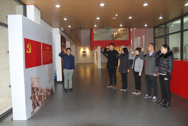 参观结束后,参与参观的全体党员在党支部书记刘伟光的带领下,在党旗面前高举右手,庄严的重温入党誓词,坚定共产主义信仰,永葆共产党员本色。