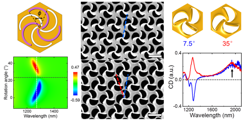 4. Xia Li,# Chang-Yin Ji,#,* Shanshan Chen, Yu Han, Juan Liu, and Jiafang Li*, “Phase enabled circular dichroism reversal in twisted bi-chiral propeller metamolecule arrays”, Advanced Optical Materials 9(24), 2101191 (2021).