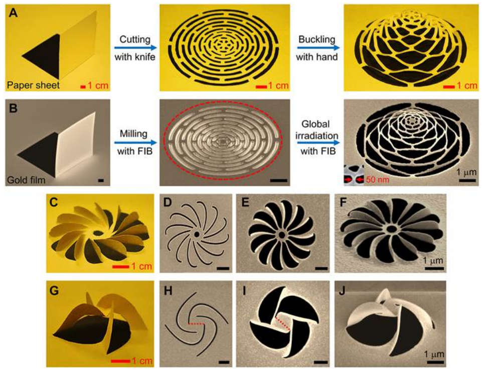 1)3D micro-/nano-fabrication technology and optoelectronic device with Nano-kirigami