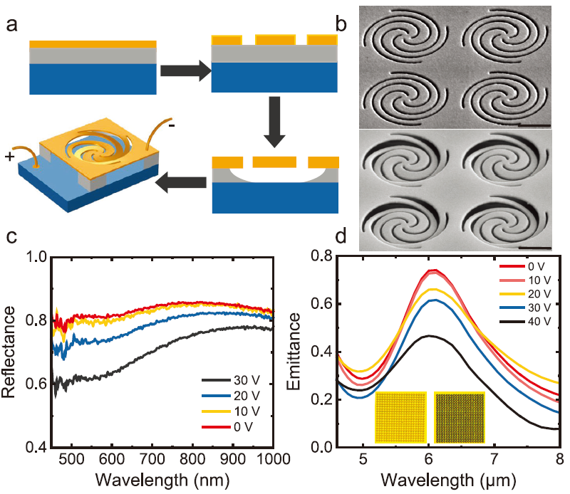 图2. 螺旋线形动态热辐射超表面器件的实现