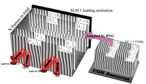 1935年,爱因斯坦、波多尔斯基和罗森提出了著名的EPR佯谬,他们以量子力学基本原理为基础,推导出与经典理论中的物理实在论相矛盾的结论, 并把这一量子特性称之为“幽灵般的超距作用”,进而对量子力学提出了质疑。薛定谔在研究这一佯谬时提出了 “操控(steering)”的概念,后来被称为EPR操控(EPR steering)。EPR操控描述了对一个粒子进行测量能非局域地影响另一个粒子状态的能力,它是一类量子非局域特性。我们通常说的量子非局域特性是指某个纠缠态能违背贝尔不等式,叫做贝尔非局域性。而EPR steering这种非局域特性指的是量子纠缠态中只有一部分具有EPR操控特性,而这些具有EPR操控特性的态中只有一部分具有贝尔非局域性。目前对steering效应的研究大多集中在二维情况,而众多的理论研究表明,高维系统中的量子steering效应具有许多新奇而重要的特性,例如噪声抑制,亦即随着维度的提升,steering效应抵制噪声的能力会越来越强。然而,因为目前对高维系统调控技术的不成熟,实验上观测这些特性还存在着极大的困难。