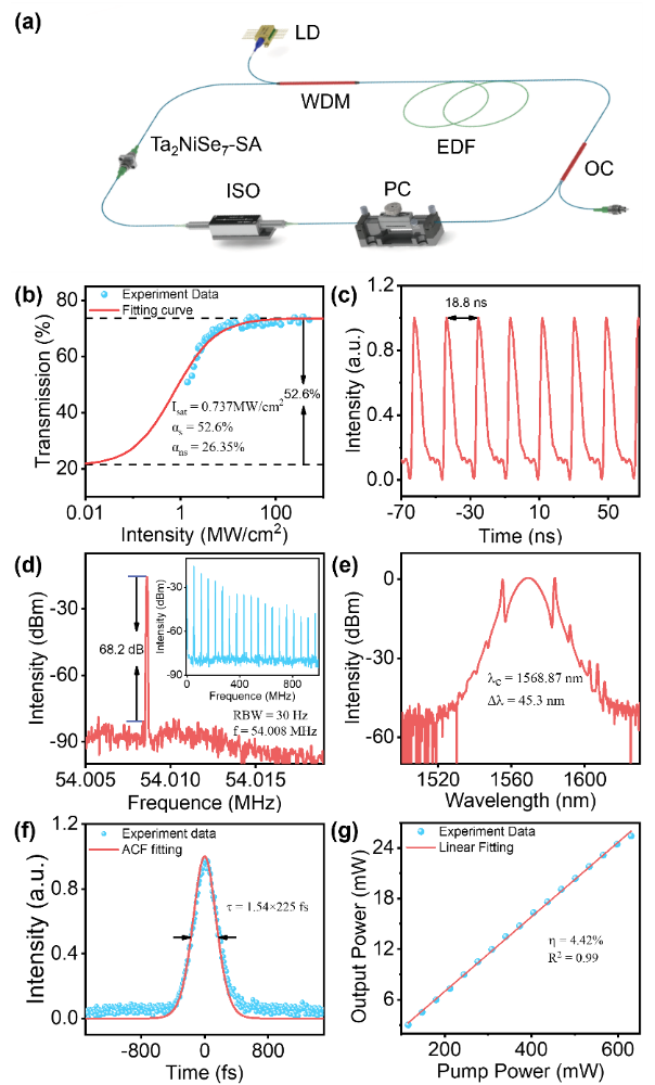 图2. Ta2NiSe7的光饱和吸收体的性能