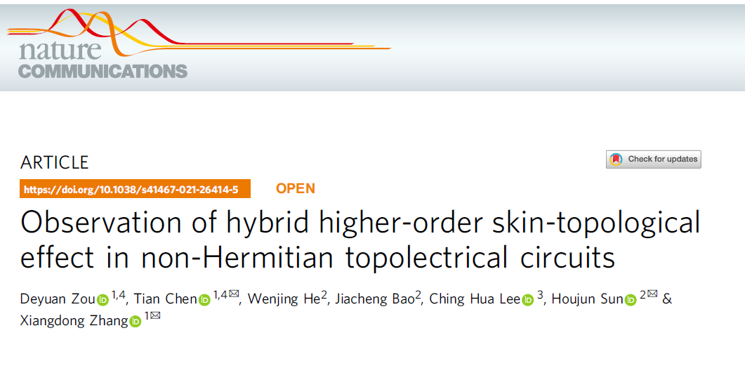 欧冠投注官网入口在非厄米拓扑电路和高阶趋肤效应研究方面取得重要进展