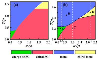 自从1911年荷兰物理学家昂内斯发现超导的一百多年来,超导现象一直引起经久不衰的关注。1957年,美国物理学家Bardeen、Cooper、Shrieffer提出所谓BCS理论来解释超导的物理起因,即,电子之间通过交换晶格振动的能量量子(即声子)来产生有效吸引力,进而形成库伯配对。一对库伯对整体上可以看作是玻色子。材料中大量的库伯对玻色子形成玻色-爱因斯坦凝聚而产生的宏观量子态就是超导。BCS理论提出之后的半个多世纪以来一直都是超导领域的金科玉律而被广泛遵循。然而,是否存在超越BCS理论的超导态?特别是,是否存在四个电子形成束缚态玻色子,然后经历玻色-爱因斯坦凝聚而形成超导,即四倍电荷超导态,的可能性? 2009年,斯坦福大学Steven Kivelson教授团队提出配对密度波基态在升温后部分热熔化而形成四倍电荷超导的理论。之后,麻省理工学院付亮教授团队和清华大学姚宏教授团队提出液晶相超导的部分热熔化可以产生四倍电荷超导。然而,所有这些产生四倍电荷超导相都没有被实验观测到,其原因在于材料实现方面的困难。因而,如何找到容易被材料实现的产生四倍电荷超导的机制一直以来都是该领域关注的焦点。