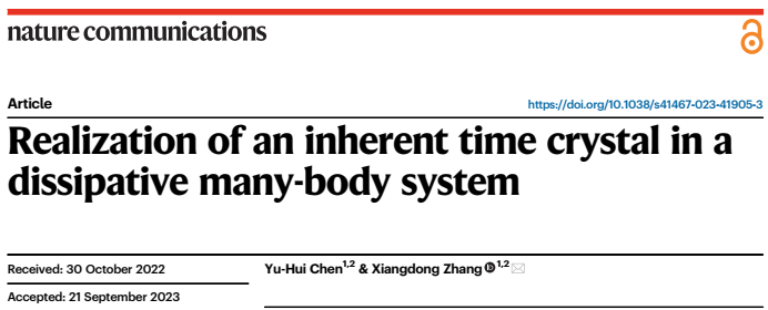 日前,欧冠官方网站陈宇辉研究员和张向东教授在时间晶体研究上取得重要突破,首次在实验上实现了固有的时间晶体,相关研究成果在Nature Communications上发表[Nat Commun (2023) 14:6161]。欧冠官方网站陈宇辉研究员为该论文的第一作者,欧冠官方网站张向东教授为论文的通讯作者。该工作得到了国家自然科学基金,欧冠投注官网入口青年教师学术启动计划以及欧冠投注官网入口青年科技创新计划的支持。该研究发表后引发广泛关注,受Nature集团Nature Portfolio Communities的邀请,在“Behind the Paper”栏目撰稿分享研究经历。