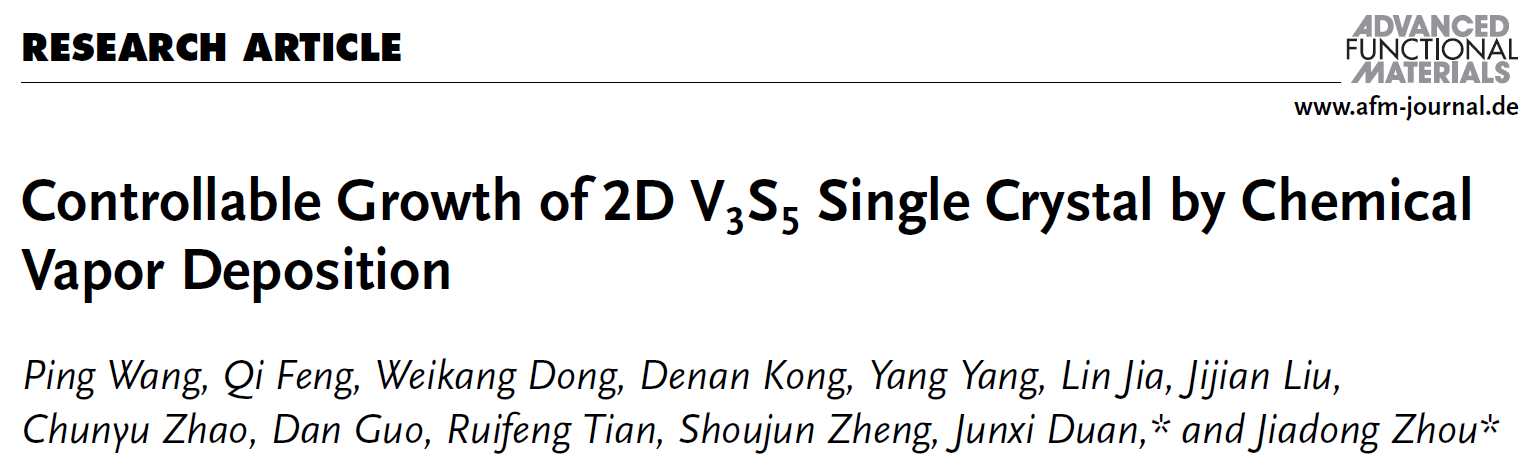日前,欧冠官方网站周家东教授与段俊熙副研究员开展合作,在二维钒基自插层硫族化合物的体系中,通过化学气相沉积方法,基于二元金属前驱体共反应机制,可控合成二维自插层V3S5晶体材料,并研究其相关物性。相关研究成果发表在国际顶刊《Advanced Functional Materials》上。