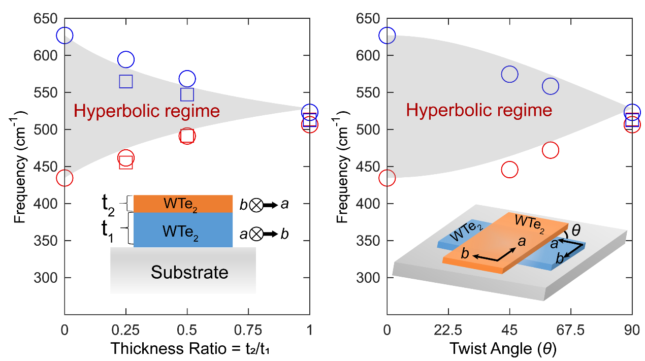 图1,WTe2双层薄膜结构双曲区间随薄膜厚度比和扭转角度依赖关系。