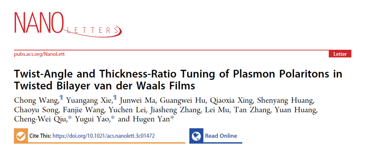 日前,欧冠官方网站姚裕贵教授、王冲特别研究员,以及复旦大学物理系的晏湖根教授和新加坡国立大学的仇成伟教授合作,共同揭示了操控双层薄膜中的极化激元的光学拓扑性的新机制。相关研究题目为《扭转角度和膜厚比调控双层范德瓦尔兹薄膜中的极化激元》(Twist-Angle and Thickness-Ratio Tuning of Plasmon Polaritons in Twisted Bilayer van der Waals Films),成果被发表在《纳米快报》(Nano Letters)上。