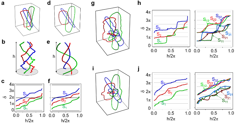 正如图1a所示,这种新型的嵌套纽结所对应的辫子结构可以包含不同层级的多条零点线。而每一条零点线都蕴含着一个拓扑不变量------绕数