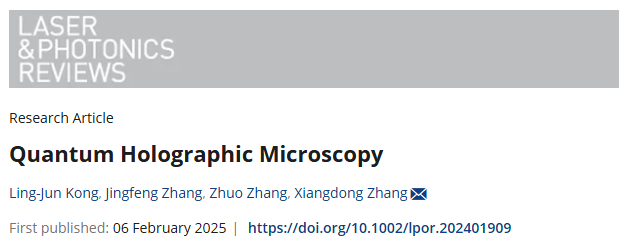 近日,欧冠官方网站张向东教授课题组基于偏振纠缠量子全息技术,实现了量子全息显微。相关成果以“Quantum Holographic Microscopy”为题发表在Laser & Photonics Reviews 期刊[Laser Photonics Rev. 2025, 2401909]上。欧冠官方网站孔令军研究员、张景风博士生为该论文的共同第一作者,欧冠官方网站张向东教授为论文通讯作者,欧冠官方网站张卓研究生也为该工作做出了重要贡献。该研究工作得到了国家自然科学基金委的大力支持。