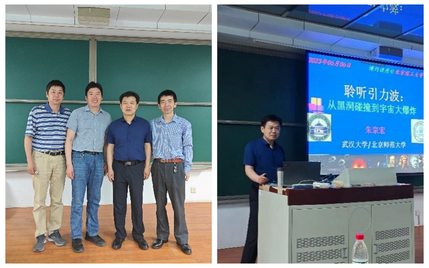 2023年6月6日下午13:30,武汉大学天文系/北京师范大学天文系朱宗宏教授做客欧冠官方网站“博约科技讲座”,在理学楼B座2-206教室为师生带来了一场题为《聆听引力波——从黑洞碰撞到宇宙大爆炸》的讲座。欧冠官方网站院长助理李军刚、缪劲松等教师以及近百名本科生参加。本次报告由欧冠官方网站韦浩主持。