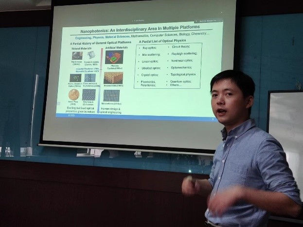 胡光维教授在报告中提到:纳米光子学是一个快速发展的领域,在现代光学研究中必不可少,其中一个重要领域是纳米尺度上的光与物质相互作用研究。首先,胡光维教授展示了人工设计的结构材料,如超表面,以及具有奇异光学特性的天然材料,包括低维量子材料和传统晶体等用于可见到红外到太赫兹频率范围的纳米光子材料,并介绍了在各种具有吸引力的平台上调控纳米尺度光场的最新成果。其次,他还讲解了如双曲响应、拓扑跃迁、非厄米光子学和极化电子学等前沿的物理学概念,最后,胡光维教授还讨论了纳米光子超表面与单层半导体材料的耦合研究。这些新型纳米光子平台将对红外传感、生物成像、光学计算、量子光学、纳米激光、光子芯片等诸多技术产生重要影响。