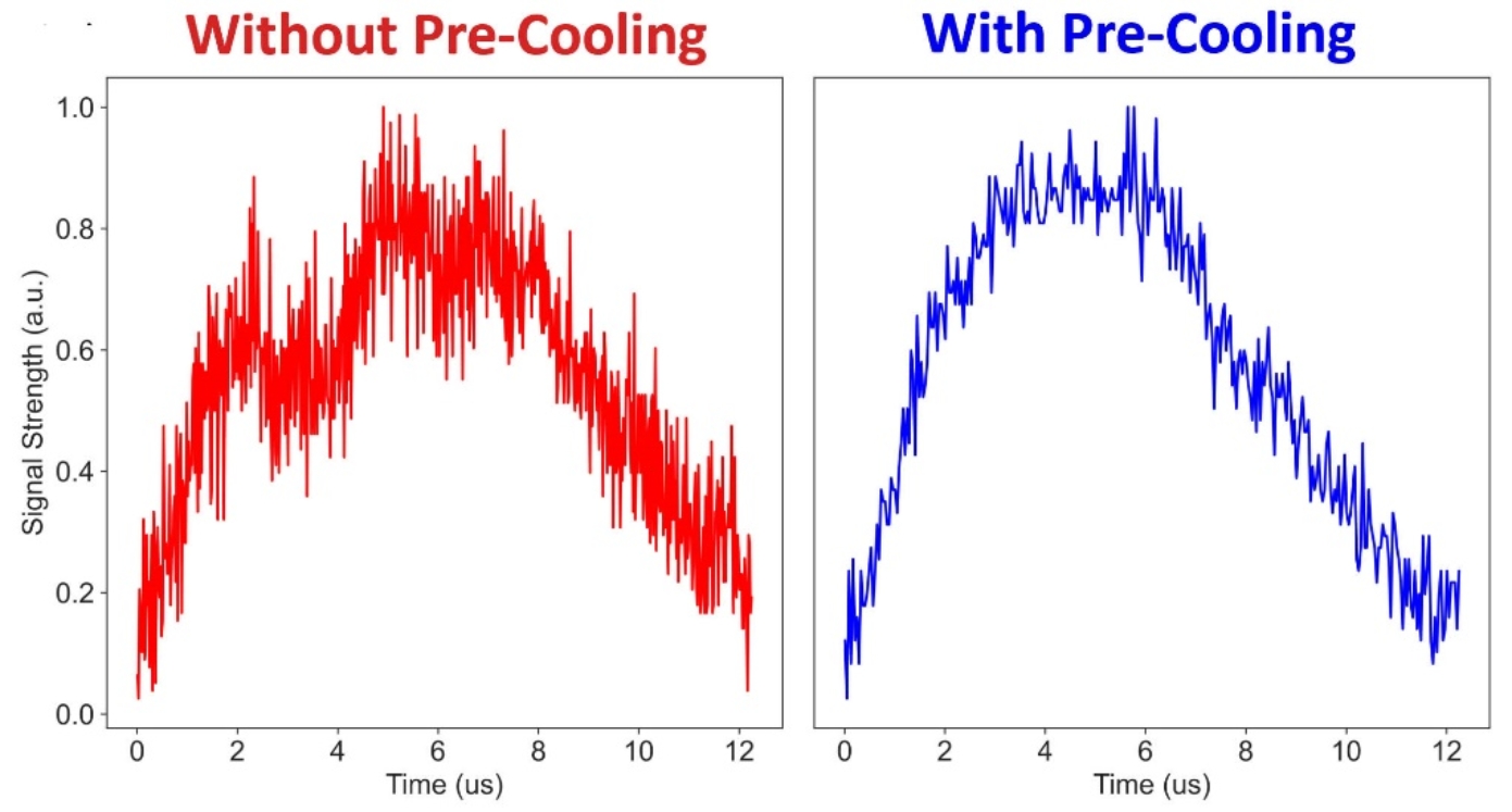 | 摘要:The detection of weak electromagnetic signals at RF and microwave frequencies lies at the heart of many key applications such as mobile telecommunications, radar and magnetic resonance imaging. The required hardware often includes one or several low-noise microwave amplifiers (LNAs) to boost the signal at various points on its journey through the receiver/detector. On planet earth, at 293 K, the performance of these applications, in terms of range, sensitivity and accuracy, is limited by the presence of incoherent thermal photons in the signal that manifests itself as noise. A subset of applications, such as electron paramagnetic resonance (EPR), involves the measurement of standing waves or “modes” inside an electromagnetic cavity or resonator. It will be explained how the thermal noise within such a mode can be substantially reduced simply by strongly coupling the mode to the input of an LNA. In other words, the LNA acts as a refrigerator, cooling down the modes to which it is coupled. Mode temperatures of just a few tens of kelvin are easily obtained with the cavity and LNA still operating at room temperature. Upon disconnecting the LNA (with a sufficiently fast microwave switch), the coldness persists, allowing lower-noise measurements to be made, for a brief period of time equal to the cavity’s photon lifetime. We demonstrate how such “pre-cooling” can be used to improve the signal-to-noise ratio of a time-resolved EPR spectrometer:
