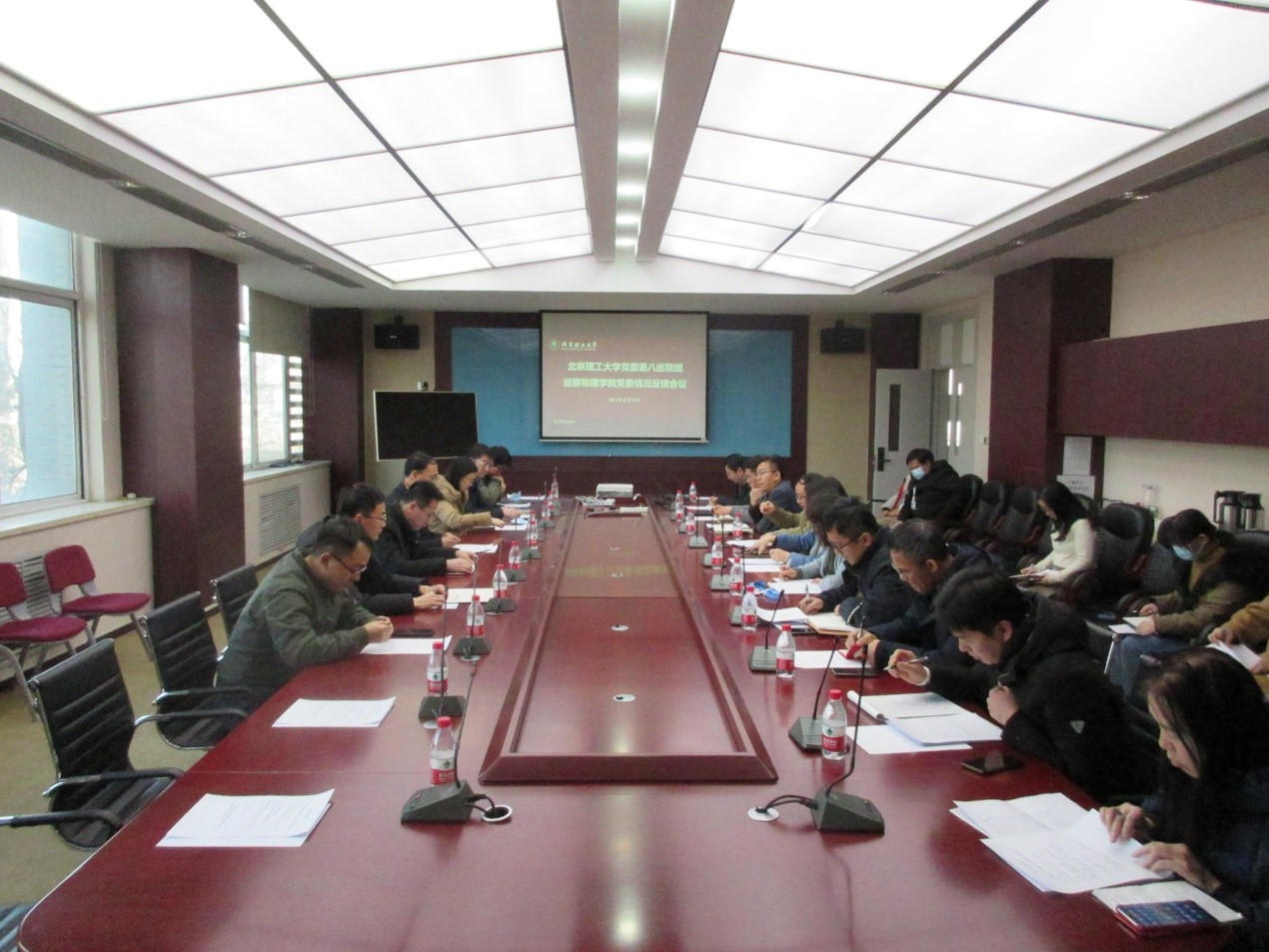 学校党委第四轮巡察第八巡察组全体成员、欧冠官方网站党政领导班子成员、部分师生代表参加会议。