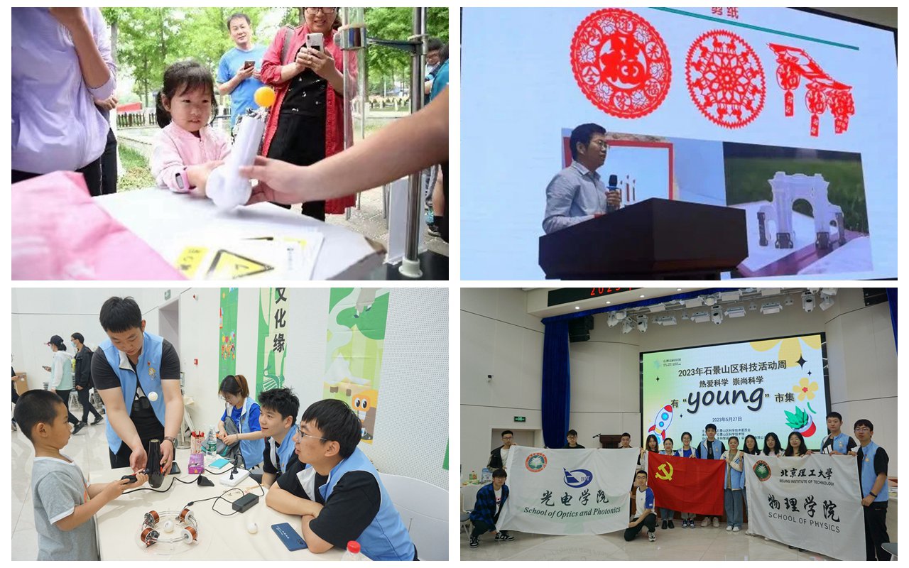 5月20日至5月31日全国科技活动周期间,欧冠官方网站联合科普矩阵资源,参与石景山科技馆科技周,为社会公众奉送科普大餐,让青少年感受科学前沿的奇幻魅力。此外,欧冠官方网站还牵头组织光电学院、生命学院和计算机学院参与石景山科技馆“有young市集”,以生动有趣的演示实验向社会物理爱好者传播科学,寓教于乐。