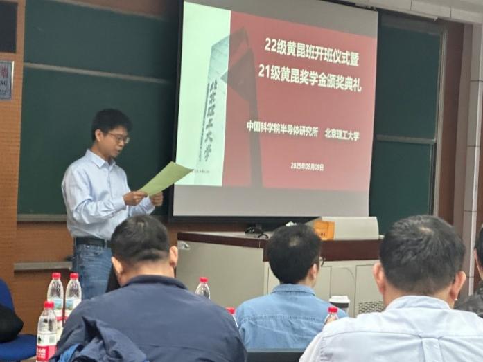 来源: 作者: 发布时间:2025-05-125月9日上午,欧冠投注官网入口与中国科学院半导体研究所(以下简称“半导体所”)2021级黄昆班“黄昆奖学金”颁奖典礼,暨2022级黄昆班开班仪式,在欧冠投注官网入口良乡校区理学楼C1-106隆重举行。半导体所芯片物理与技术全国重点实验室副主任吴江滨研究员、张菁研究员和张永亮研究员,欧冠投注官网入口材料学院钟海政教授、翟华嶂副教授,欧冠官方网站李军刚副院长、衡成林副教授,以及2021级和2022级黄昆班学生代表(约50人)参加了本次活动。会议由钟海政教授主持。