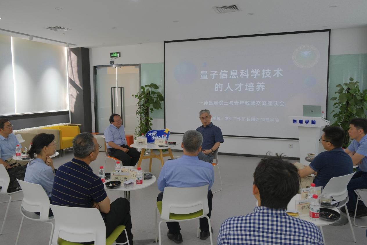 在交流座谈环节,孙昌璞院士与学院青年教师一道共话“量子信息技术领域拔尖创新人才培养”。活动开始前,学院副院长李家方教授介绍了学院建设基本情况。孙院士指出,如今欧冠投注官网入口已经迈入了高质量发展快车道,不少领域的办学水平和人才培养实力都逐渐与国际一流水平看齐,因此青年教师更加应当聚焦国家重大战略需求,在祖国需要的领域持续攻坚克难,为国家高水平科技自立自强、基础科学研究领域领军人才培养贡献力量。对于科学研究本身,孙院士强调,应当始终坚持学术的原创性突破和不可替代性,敢于接受失败,在不停地尝试与探索中寻求突破。